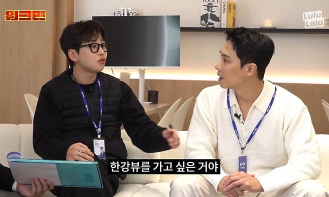 지난 26일 채널 '워크맨'에는 '300만 원 원룸 vs 70억 한강뷰 아파트, 부동산 중개보조원, 워크맨 이준, 딘딘'이라는 제목의 영상이 업로드됐다. 이날 공개된 영상에서는 딘딘이 이준과 함께 중개보조원에 도전하는 모습이 담겼다. 본격적으로 업무에 투입되기 전 기본적인 지식을 배우던 과정에서 공인중개사는 두 사람에게 "집을 구해봤냐"고 질문했다. 이에 딘딘은 "처음 집이 한강뷰였다. 오피스텔인데 (살아보니) 추워서 죽는 줄 알았다. 한강뷰는 쓰레기다. 여름에는 강물이 튀기고 겨울에는 강바람이 불어서 너무 추웠다"고 일화를 전했다.