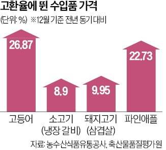 홈플러스는 냉동육류 판매 비중을 늘리고 있다. 냉장육류는 유통 기간이 짧아 환율 변동이 판매가에 즉시 반영된다. 냉동육류는 비축이 가능해 고환율 국면이 지속돼도 비교적 저렴한 가격에 팔 수 있다. 현재 홈플러스 돈육 판매 비중은 냉장이 약 90%, 냉동이 10% 수준이다. 롯데마트 관계자는 “수산·축산물 외에 과자, 파스타 등도 환율 영향을 받는 상황”이라며 “유럽 내 최대 식료품 소싱 단체인 유럽그로서리유통연합과 공동 구매해 수입가를 낮추고 있다”고 말했다.