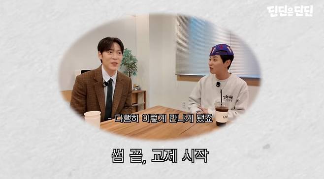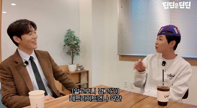 딘딘은 "형이 사실 제가 지금 진행하고 있는 '뮤직하이' 원래 DJ여서 한 번 만난 적 있다. 그리고 어떻게 콘텐츠에 이렇게 또 물려가지고 (만나게 됐다)"라면서 심경이 어떤지 물었다. 이에 존박은 "라디오 DJ 일자리도 뺏기고, 영어 선생님도 슬금슬금 올라오시니까 조금 위협을 느끼고 있는 중"이라며 딘딘을 경계했다. 그러자 딘딘은 "저희는 처음부터 형이랑 만나고 싶다고 이야기했었다. 제가 영어 콘텐츠 딱 올리자마자 댓글에 다 '존박 만나라' 이러더라. 그런데 형네 채널에서 언급이 됐다"라며 "이건 100% 그린라이트다 해서 댓글도 달았다"라고 말했다. 이어 "그런데 처음에 댓글 고정을 안 해주더라. 그래서 이게 그린라이트가 아니라 레드라이트인가 싶었다. 그래서 약간 썸타는 느낌이었다"라고 당시 소회를 나눴다. 딘딘은 "뭐 그래도 이렇게 만나지 않았냐"고 덧붙였고, 존박은 해맑게 웃으며 이를 수긍하며 레드라이트 의혹(?)을 일축했다.