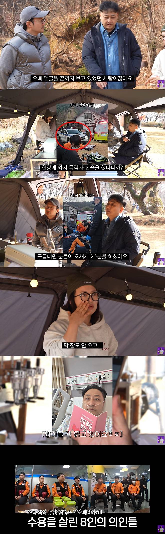 한편 김숙과 김수용, 임형준은 당시 현장에 출동했던 가평소방서 구급대원들과도 만났다. 박민중 구급대원은 당시 상황에 대해 "경험상 심전도 리듬 봤을 때 제세동 5~6번이면 사실 돌아오시는 분들이 계셔서 내 경험을 믿고 하려고 했는데 제세동 횟수가 넘어가면서 쉽지 않다는 생각을 했다. 그래서 의사한테 보통 한두 번 전화하는데 중간에 한 번 더 연락드려서 문의드렸다"고 전했다. 이어 "다른 선배님한테 물어봤을 때 (전기충격만) 11번까지 하는 게 흔치는 않다고 하더라"고 덧붙였다.