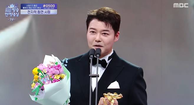 29일 열린 '2025 MBC 방송연예대상'에서 '올해의 예능인상'을 받은 전현무는 수상 소감 내내 무거운 표정을 감추지 못했다.