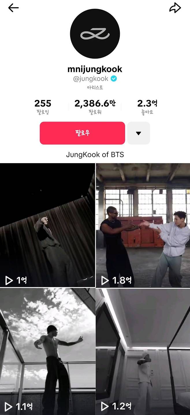 방탄소년단 정국의 틱톡 계정 성과 역시 눈길을 끈다. 전체 19개 게시물 가운데 조회수 1억 이상 영상이 4개, 5000만 이상 조회수 영상은 18개에 달한다. 개인 고유 해시태그 ‘#jungkook’은 누적 조회수 3000억을 넘겼고, 이는 전 세계 솔로 아티스트 가운데 최초 기록이다.