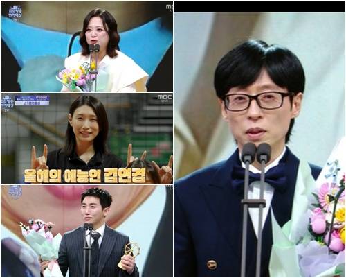 올해의 예능인상 수상자로는 기안84, 장도연, 김연경, 그리고 마지막으로 유재석이 차례로 호명됐다. 김연경은 “선수들이 만들어준 결과를 대표로 받는다”며 의미를 더했다.시청자 투표로 선정된 올해의 예능 프로그램상은 신인감독 김연경이 차지했다. 이에 MC들은 “이 정도면 대상까지 갈 수 있다”고 입을 모았고, 김연경 역시 “선수 시절 신인상과 MVP를 받았듯 예능에서도 새로운 기록을 쓰고 싶다”고 밝혔다.