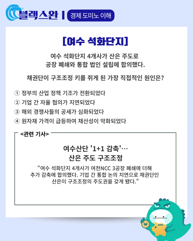 ▶기사 바로가기: 여수산단 ‘1+1 감축’···산은 주도 구조조정