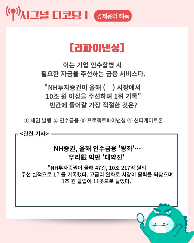 ▶기사 바로가기:NH증권, 올해 인수금융 ‘왕좌’···우리銀 막판 ‘대약진’