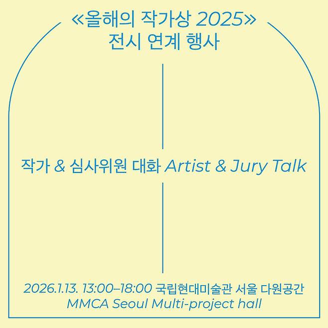 국립현대미술관(MMCA·관장 김성희)은 '올해의 작가상 2025' 최종 수상 작가 선정을 앞두고, 작가와 심사위원이 직접 대화를 나누는 공개 프로그램 ‘작가-심사위원 대화’를 2026년 1월 13일 오후 1시부터 6시까지 국립현대미술관 서울 MMCA 다원공간에서 개최한다.