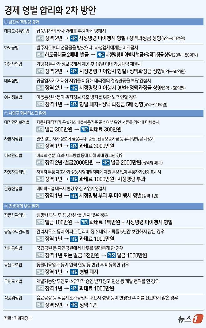 [그래픽] 경제 형벌 합리화 2차 방안
