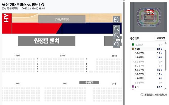 홈 현대모비스보다 원정 LG의 벤치 뒤 특석이 더 빨리 판매되었다.