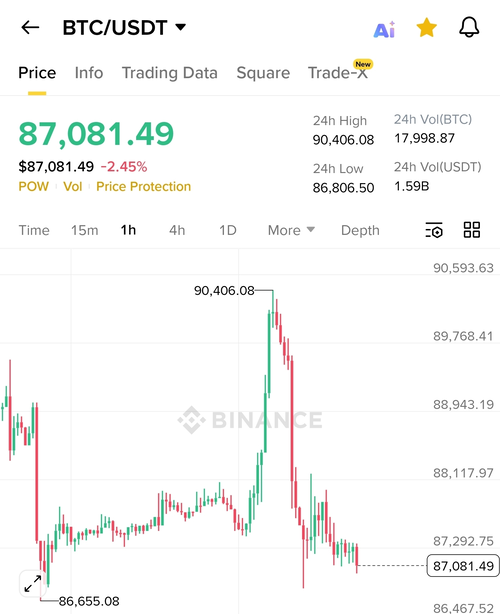 비트코인은 전날 저녁 9만달러까지 반등하며 투자자들의 기대감을 모았지만 약 7시간만에 상승폭을 모두 반납하고 다시 8만7000달러선으로 내려왔다.