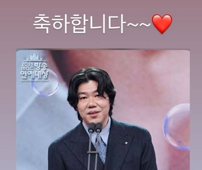 가수 이효리가 남편 이상순의 수상에 진심 어린 축하를 전했다.