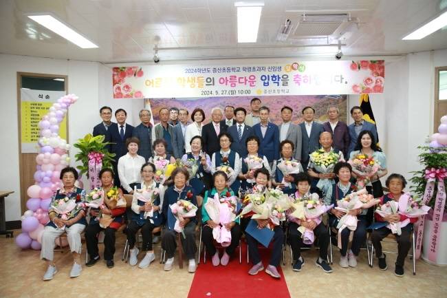 | ▲ 2024년 5월 27일 열린 증산초등학교 입학식. 관계 기관에서 많은 분이 입학식에 참여하여 축하하여 주었다. |