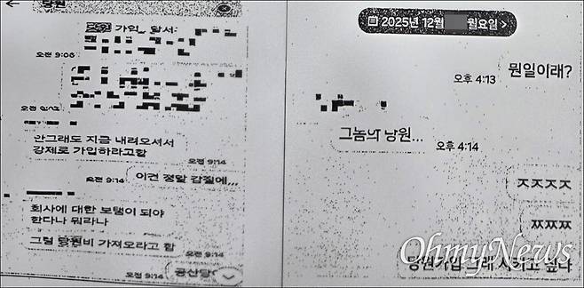 직원들은 단톡방을 통해 "지금 내려와서 강제로 가입하라고 함"이라고 하거나 "회사에 대한 보탬이 돼야 한다나 뭐라나", "당원가입 그래 시키고 싶나"라는 등의 불만을 표시했다.