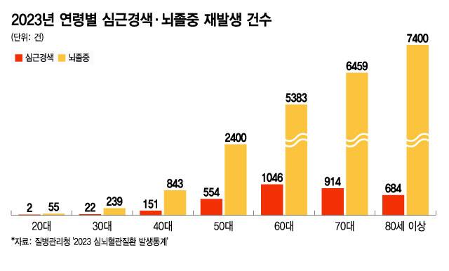 한국인의 사망원인(1위는 암) 2위가 심장질환, 4위가 뇌혈관질환이다. 그중에서도 심근경색과 뇌졸중은 골든타임을 놓치면 발병 당일 사망하거나 평생 장애를 안고 살아갈 수 있어 치명적이다. 그런데 심근경색과 뇌졸중을 한번 겪어 살아난 사람이 또다시 겪는 '재발률'이 최근 9년 새 크게 는 것으로 나타났다.