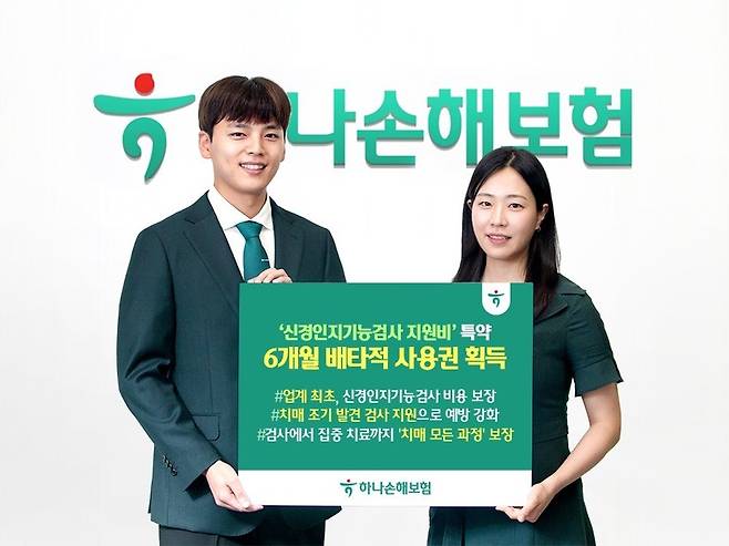 하나손해보험은 '신경인지기능검사 지원비 보장 특약'으로 6개월간 배타적 사용권을 획득했다고 오늘(30일) 밝혔습니다.