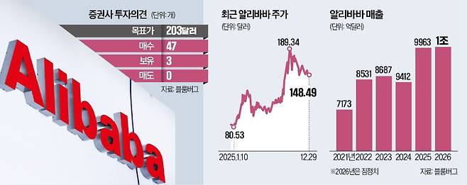 타오바오 등 전자상거래 플랫폼으로 잘 알려진 알리바바가 인공지능(AI) 전환에 속도를 내고 있다. 매출 다변화는 물론 AI·클라우드 부문으로 핵심 성장축을 효과적으로 바꾸고 있다는 평가가 나온다. 중국 당국의 규제 리스크를 한고비 넘긴 데다 미국 빅테크에 비해 낮은 밸류에이션(실적 대비 주가 수준)도 매력적인 투자 요인으로 꼽힌다. 다만 월가에선 중국의 지정학적 리스크와 전자상거래 시장 과열 등이 투자 변수라고 지적했다.