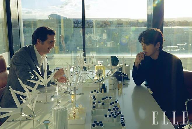 이토록 우아하고 단단하며 자신감 넘치는 샤넬 향수의 ‘코’와 타고난 재능과 뜨거운 노력으로 전 세계를 열광케 하는 올 라운더 아티스트의 만남. 샤넬 뷰티의 새로운 미래가 이곳에서 시작되고 있었다. “샤넬 향수(정국)의 아이덴티티는 복합적이면서 추상적입니다. 특정 원료에 갇히지 않고, 단일 원료의 미학을 변환시키려는 의지를 갖고 있어요. 샤넬 향수(정국)는 일종의 창작이자 스타일의 창조입니다.”