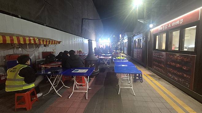 길을 따라 쭉 늘어선 야외 테이블에서 음식을 먹는 이들은 물론이고 먹거리를 사기 위해 점포 앞에 서 있는 사람도 드물었다. 기약 없는 손님을 계속 기다리느니 일찍 문을 닫을 법도 했지만 그럴 순 없다는 게 상인들의 전언이다.