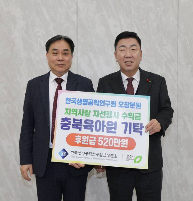 한국생명공학연구원 오창분원은 30일 지역 아동양육시설 보호아동을 위해 사용해달라며 후원금 520만원을 충북 청주시에 기탁했다.