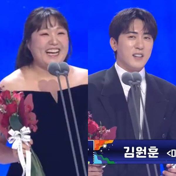 무관 징크스를 깨고 신인상의 영광을 안은 김원훈은 "정말 생각지도 못했다. 너무 놀랐다"며 "제가 이번 연도에는 상복이 없어서 올해도 쉽지 않겠다 생각했는데 너무 받고 싶었다. 오늘도 상을 못받으면 이 시상식 깽판치려고도 생각했다. 그런 불미스러운 일이 일어나지 않은 것에 대해 한편으로 감사하다"고 너스레를 떨었다.