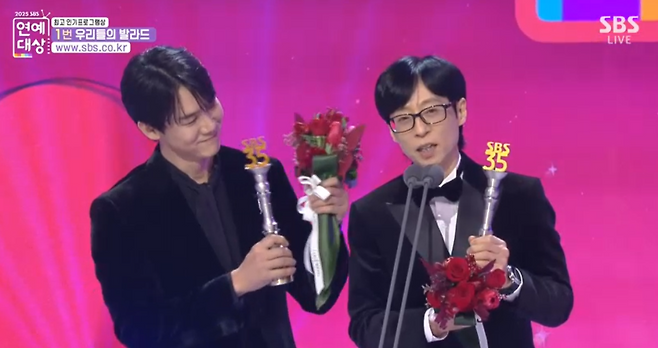 30일 오후 개최된 ‘2025 SBS 방송연예대상’에서 유재석과 유연석은 베스트 커플상 영예를 안았다.