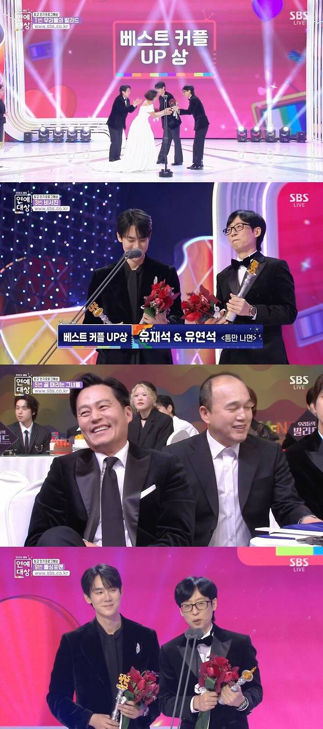 [SBS연예뉴스 | 김효정 에디터] 유재석 유연석이 베스트 커플상을 수상했다.