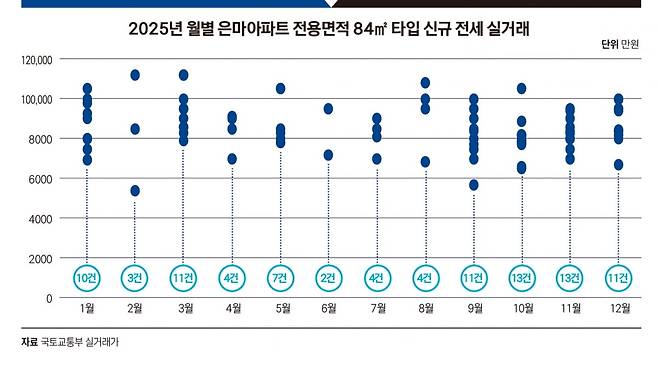 부동산 플랫폼 아실에 따르면 은마아파트 전세 매물 수는 수능이 끝난 뒤인 11월 26일 339건으로 최대치를 찍은 뒤 감소했다. 그러나 정작 성수기인 겨울방학을 앞두고는 230여 건에서 매물 감소폭이 정체된 상태이다. 신규 전세계약 실거래가는 지난해 대비 하락했다. 전용면적 79㎡ 타입 전세는 2024년 11월과 12월 각각 11억2500만원, 9억9000만원에 실거래 최고가를 기록했다. 올해 11월과 12월 실거래 최고가는 12월 24일 신고 기준 9억5000만원, 10억원이다.
