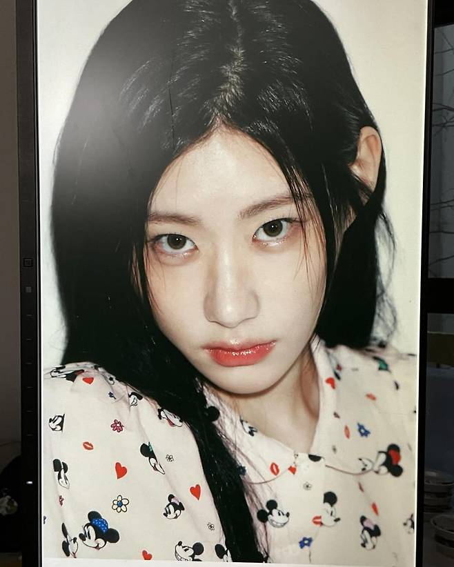 화면 가득 담긴 폴라로이드 느낌의 클로즈업에서는 촉촉한 립과 또렷한 아이메이크업이 강조돼, 러블리한 착장과 대비되는 시크한 분위기가 더 살아났다.