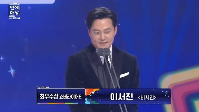 이서진은 지난 30일 열린 '2025 SBS 연예대상'에서 예능프로그램 '비서진'으로 쇼·버라이어티 부문 최우수상을 수상했다.