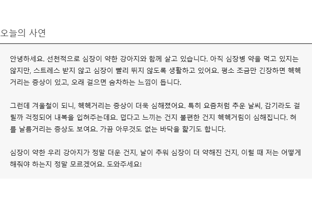 선천적으로 심장이 약한 강아지, 겨울철 유독 가쁘게 숨쉬는 이유는?