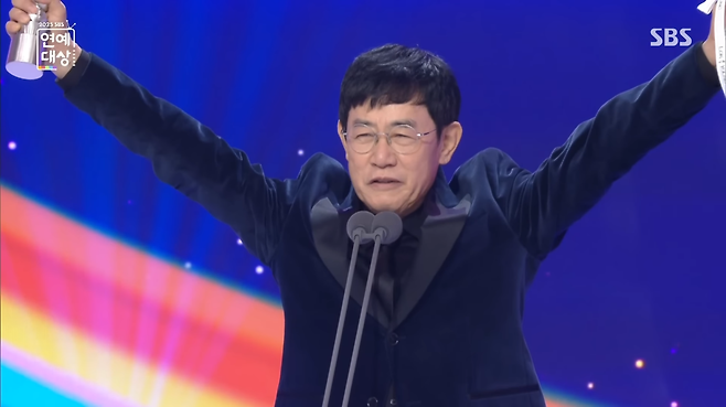 무대에 오른 이경규는 "연예대상의 꽃은 공로상이다. 원래 대상 다음에 발표해야 한다"며 특유의 너스레로 포문을 열었다.