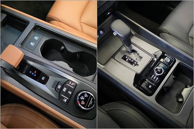실내는 파워트레인 구성에 따른 센터터널 변화가 인상적이다. 가솔린은 전자식 변속 레버를 비롯해 주행에 도움을 주는 각종 버튼이 고급스럽게 표현돼 있다. 디젤은 일반 변속 레버이며 위 아래로 휴대폰 무선충전 패드와 컵홀더가 위치한다. 물론 두 트림 모두 공간 활용도에 있어서는 변함없이 우수하다.