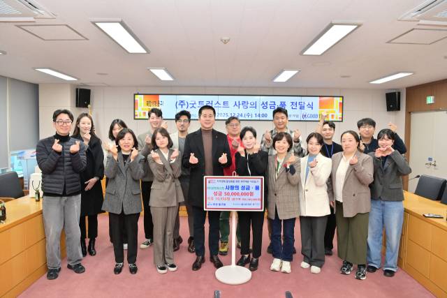 (주)굿트러스트(대표 박영근)는 지난 24일 부산 동구에 희망2026나눔캠페인 사랑의 성금과 성품을 전달했다.