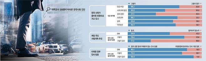 “韓 잘못 가고 있다” 법·사회과학 교수 50%… 경제·경영 62%