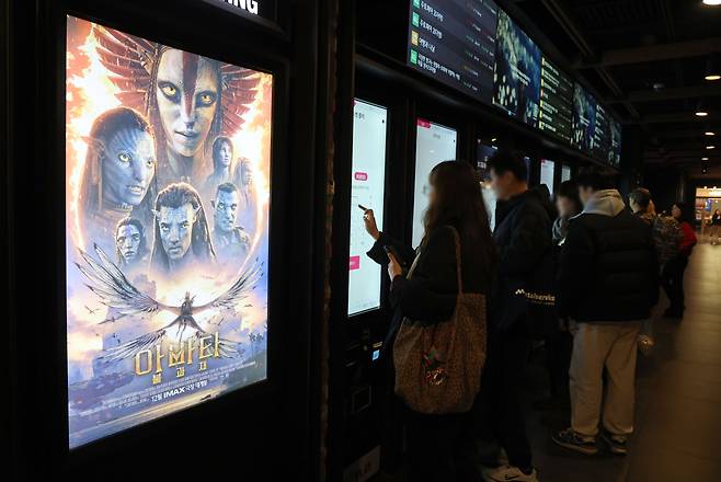 | ▲ 영화 '아바타 3' 300만 돌파 28일 서울 시내 한 영화관을 찾은 시민들이 영화 예매를 하고 있다. 지난 26일 영화관입장권 통합전산망에 따르면 크리스마스인 전날 '아바타: 불과 재'(아바타3)는 64만여 명(매출액 점유율 50.6%)이 관람하며 국내 박스오피스 1위를 기록했다. 지난 17일 개봉 이후 줄곧 1위를 유지한 '아바타 3'의 누적 관객 수는 이날 오전 7시 기준 313만 8천여 명이다. |