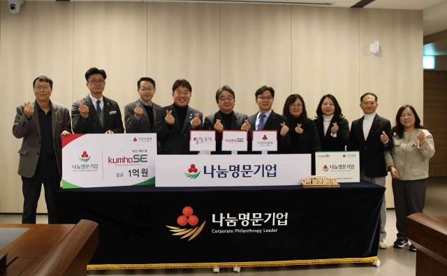 금호SE, 1억 원 기부…부산 91호 나눔명문기업 가입