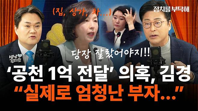 ▶ 김지호: 뭐 공천 과정은 뭐 일단 차지해 두고 지금 1억 공천 헌금 이 문제가 큰 거잖아요.