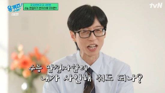 이에 유재석은 "내가 수능 만점자한테 사인을 해줘도 되나? 수학 4점인데..."라면서 민망해해 웃음을 자아냈다.