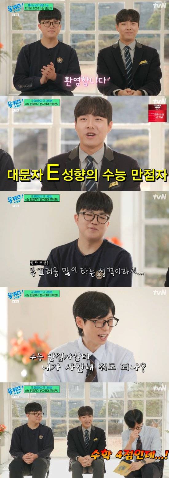 (엑스포츠뉴스 오수정 기자) '유퀴즈'에서 유재석이 수능 만점자들과 만났다.