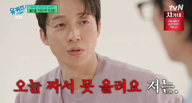 그는 또 "매니저는 '유 퀴즈' 연락을 받자마자 'MC 섭외인가?'라고 했다던데?"라는 유재석의 물음에 "대체 왜 그러는 건가"라고 한탄하곤 "이게 바로 소통의 문제다. 주변에서 날 너무 높게 사는 경향이 있다. 난 불러주셔서 감사한 입장으로 왔을 뿐"이라고 덧붙였다.
