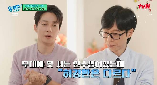 이날 허경환은 '유라인'으로 '놀면 뭐하니?'에 이어 '유 퀴즈'의 게스트로 나선 데 대해 "내가 거부할 입장은 아니고 무조건 하는 게 맞다. 그런데 이렇게 큰 방송에 나오기에 내게 포인트가 없는 거다. 상을 받았다거나 재미난 이슈가 있거나 해야 하는데 그런 게 없어서 조금 이르지 않나 싶었다"라며 겸손한 소감을 나타냈다.