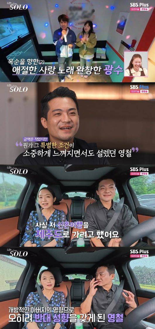 순자와 영식은 10만 원, 상철과 현숙이 30만 원, 옥순과 영호가 5만 원 데이트를 하게 됐다. 반면 천 원을 뽑은 광수와 영자는 코인 노래방을 찾아 짧고 굵게 노래방 데이트를 즐겼다.