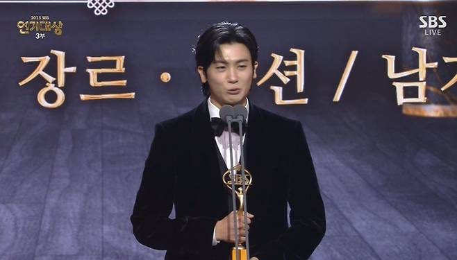 이날 이제훈이 '2025 SBS 연기대상' 대상을 차지했다. '모범택시2'로 '2023 SBS연기대상'에서 대상을 받은 데 이어 두 번째 대상.