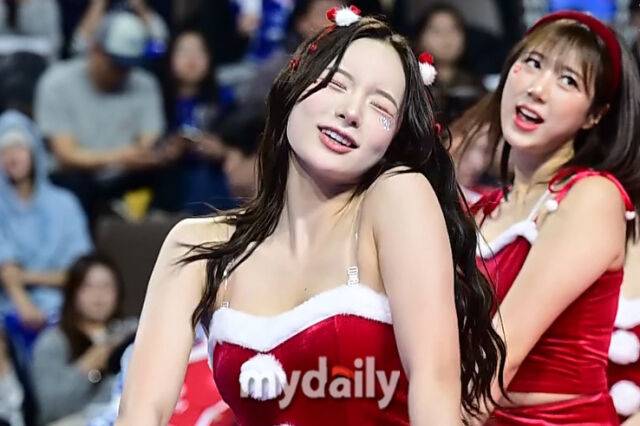 6만 틱톡커 출신 IBK기업은행 양효주 치어리더가 산타 복장을 하고 다양한 표정으로 멋진 공연을 선사했다.