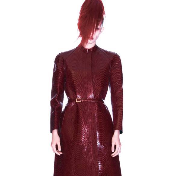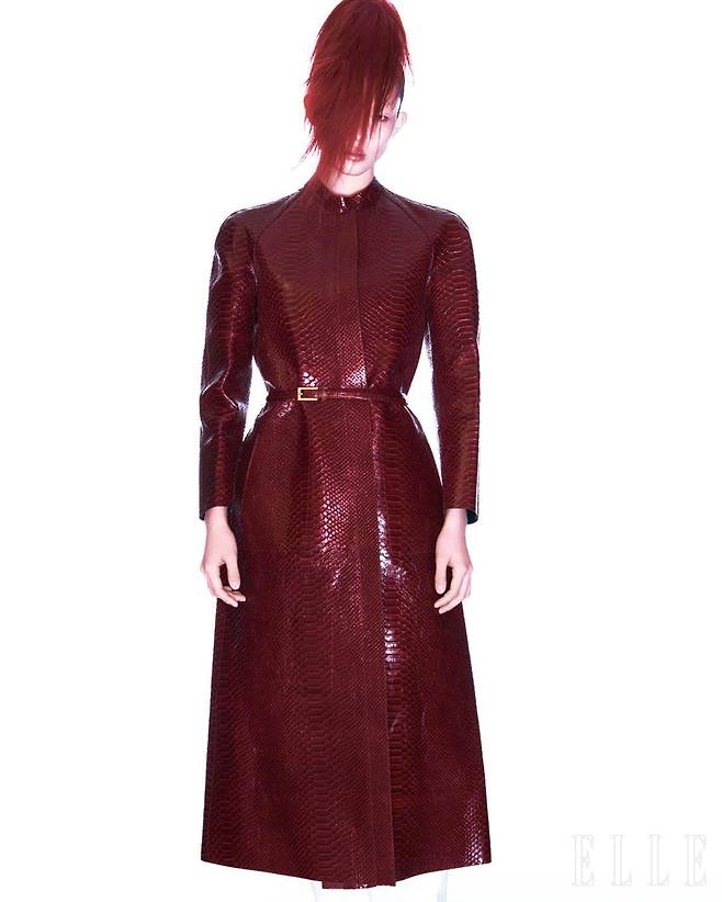 가죽에 악어 패턴을 프린트한 코트와 벨트는 가격 미정, 모두 Tom Ford. 부츠는 가격 미정, Balenciaga.