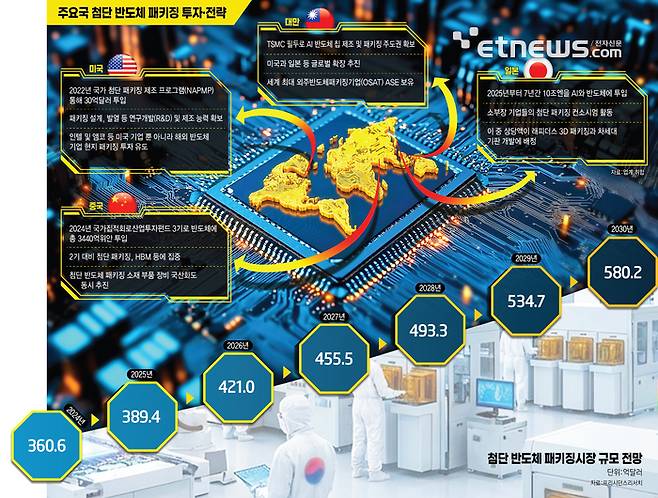 한국도 2025년부터 7년간 2744억원을 투자하고 있다. 경쟁국과 견줘 여전히 미약하다. 자칫 패키징 경쟁력 확보의 '골든타임'을 놓친다면 AI 경쟁에서 도태될 수 있다는 우려도 나온다.
