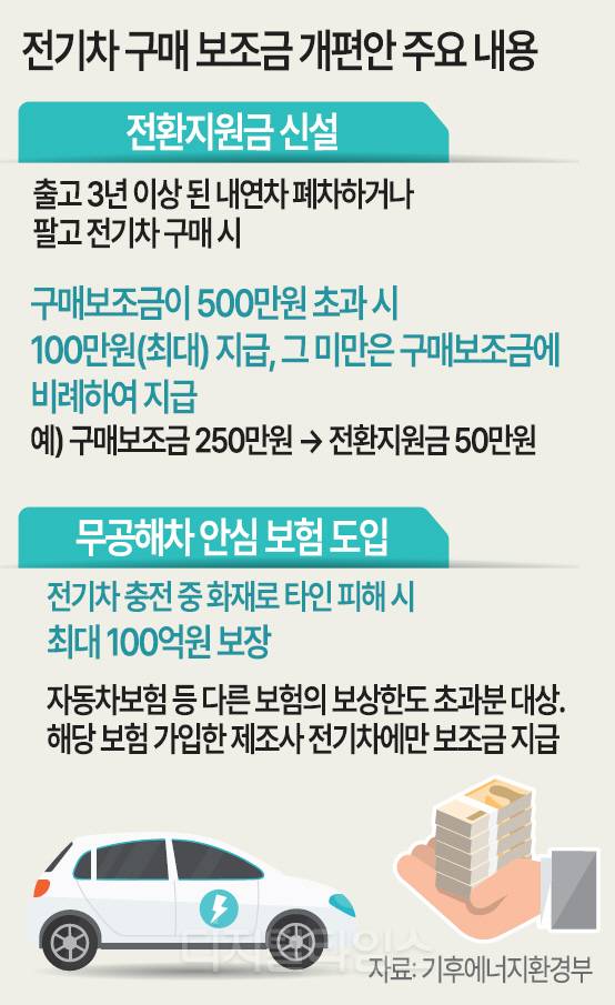 개편안에 따라 전기차 보조금 지원 단가는 작년 수준으로 유지되고, 전환지원금이 신설된다.