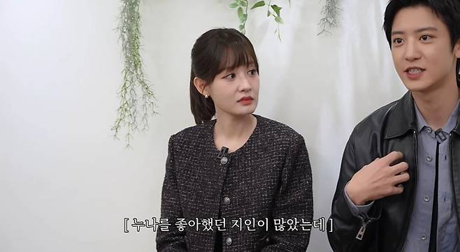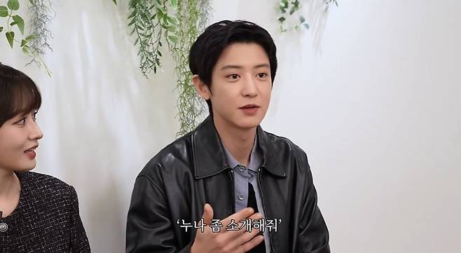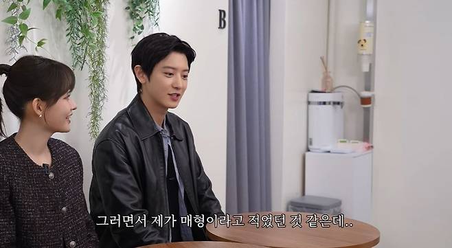 누나와 멀찍이 떨어져 앉은 찬열은 "조금만 붙어 앉으면 안 되냐"는 제작진의 말에 "최대한 붙은 거다"라고 말하면서도 다가갔다. 찬열은 "제가 데뷔를 했을 때부터 누나가 인터넷에서 굉장히 유명했다. 누나가 아나운서 일을 했고, 닮은 꼴 남매로 화제가 됐다"고 소개했다.