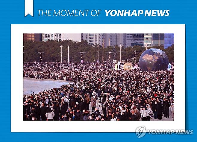 (부산=연합뉴스) 손형주 기자 = 1일 오전 부산 해운해수욕장에서 시민들이 힘차게 떠오르는 병오년 새해 첫해를 바라보고 있다. 2026.1.1 [THE MOMENT OF YONHAPNEWS]
