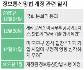 지난달 31일 미국 국무부는 한국의 정보통신망법 개정안과 관련한 입장에 대한 매일경제의 질의에 대변인 명의로 "미국은 한국 정부가 미국 기반 온라인 플랫폼(기업)의 사업에 부정적인 영향을 주고, 표현의 자유를 약화하는 네트워크법(Network Act) 개정안을 승인한 데 중대한(Significant) 우려를 하고 있다"고 답했다.