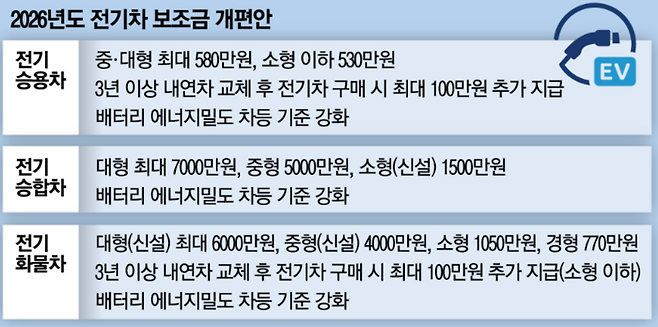 기후에너지환경부는 이 같은 내용을 담은 ‘2026년도 전기차 구매보조금 개편 방안’을 발표하고 공개 의견 수렴을 진행한다고 1일 밝혔다.